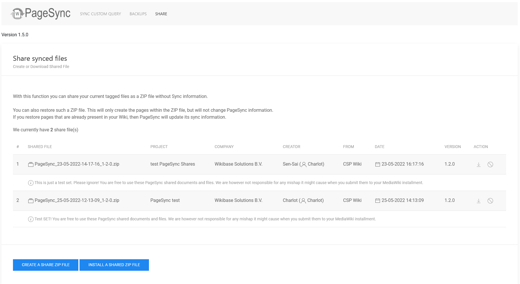 Screenshot PageSync Share page